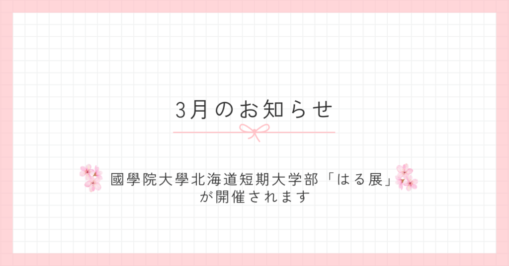 - 國學院大學北海道短期大学部「はる展」が3月1日から開催されます。