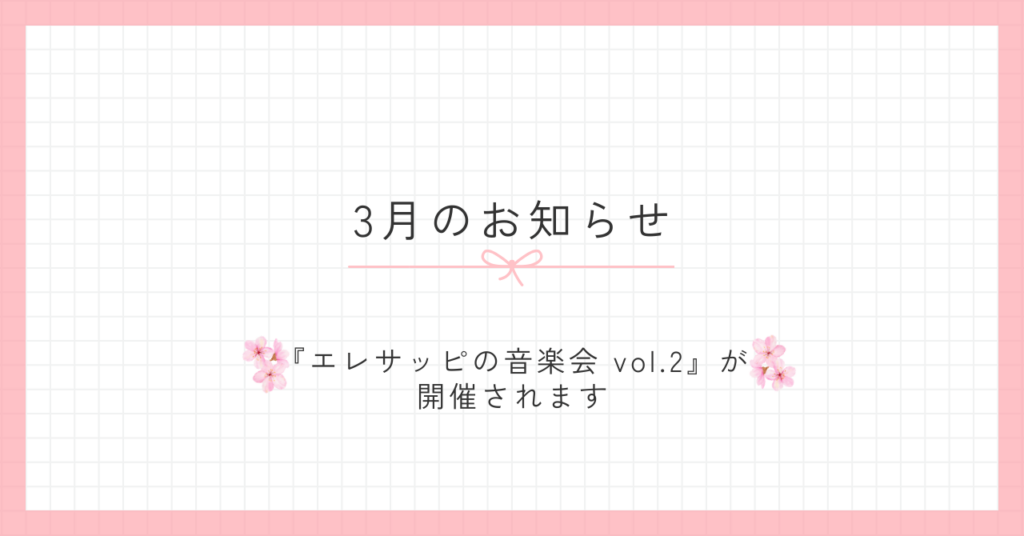 【3/8公演】『エレサッピの音楽会 vol.2』が開催されます|奈井江町